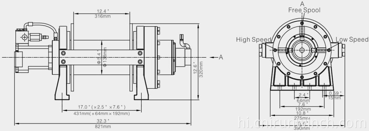 फुल-रेटेड लोड रखने के लिए, और उच्च शक्ति कठोर दो चरण ग्रहीय गियर रेड्यूसर दोहरी गति वैकल्पिक और रिलेबिलिटी प्रदान करता है। हुक, वायर रोप और एसडब्ल्यूआर टेंशनर के अलावा, यह एक काउंटर ब्लेंस वाल्व भी प्रदान करता है।